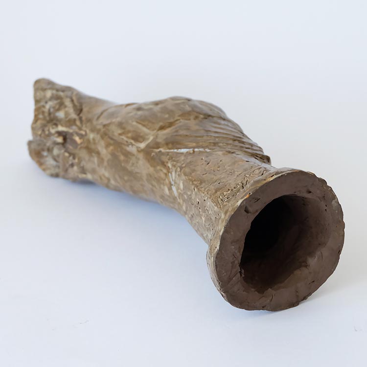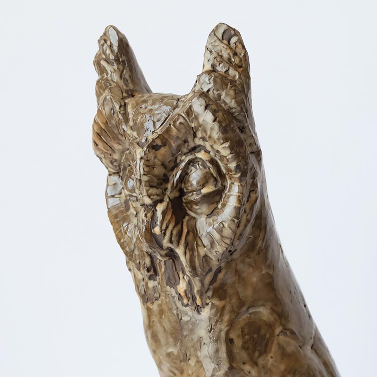 Hand-shaped ceramic owl sculpture.